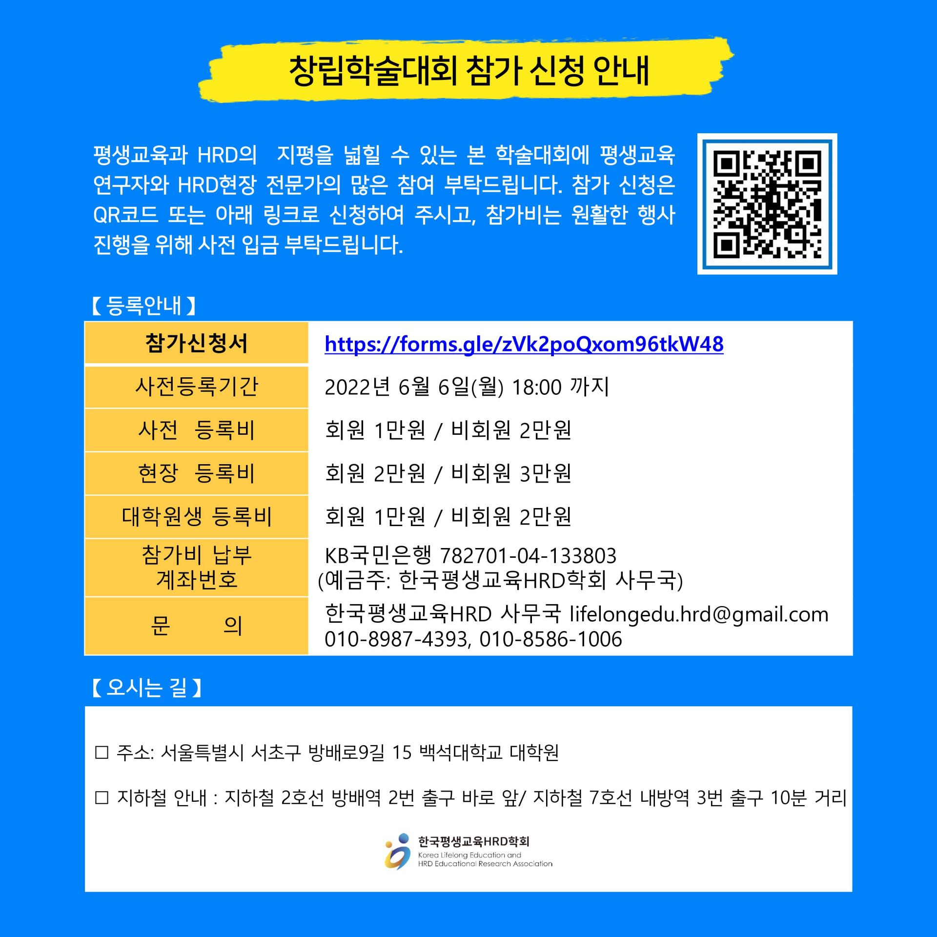 주소 : 서울 서초구 방배로 28 덕산빌딩 402-5 한국평생교육HRD학회